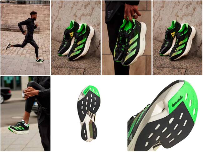 Creados en color amarillo beam / verde solar, los Adizero Adios Pro 3 cuentan con lo siguiente:
