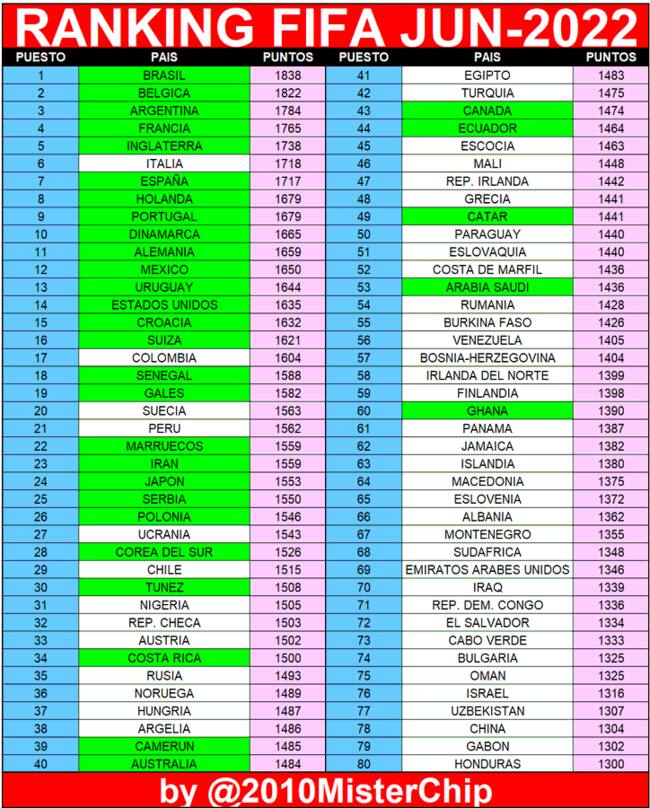 ranking fifa junio 2022