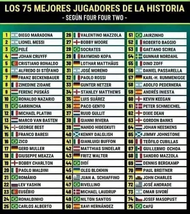 LOS 5 MEJORES JUGADORES DE LA HISTORIA SEGÚN FOUR FOUR TWO