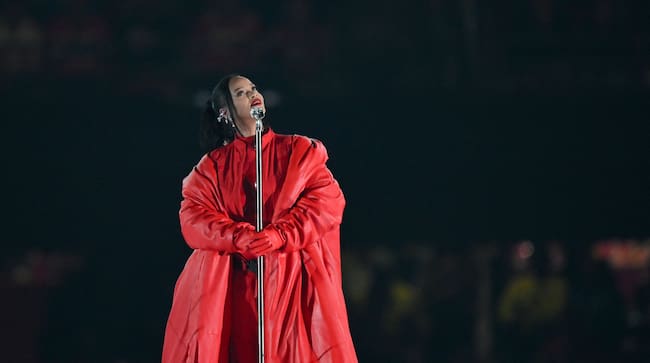 Rihanna con impresionante outfit color rojo le puso sabor al Super Bowl LVII