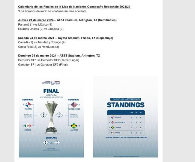 Los otros dos boletos saldrán de los repechajes que se disputarán Honduras vs Costa Rica y Canadá vs Trinidad y Tobago.