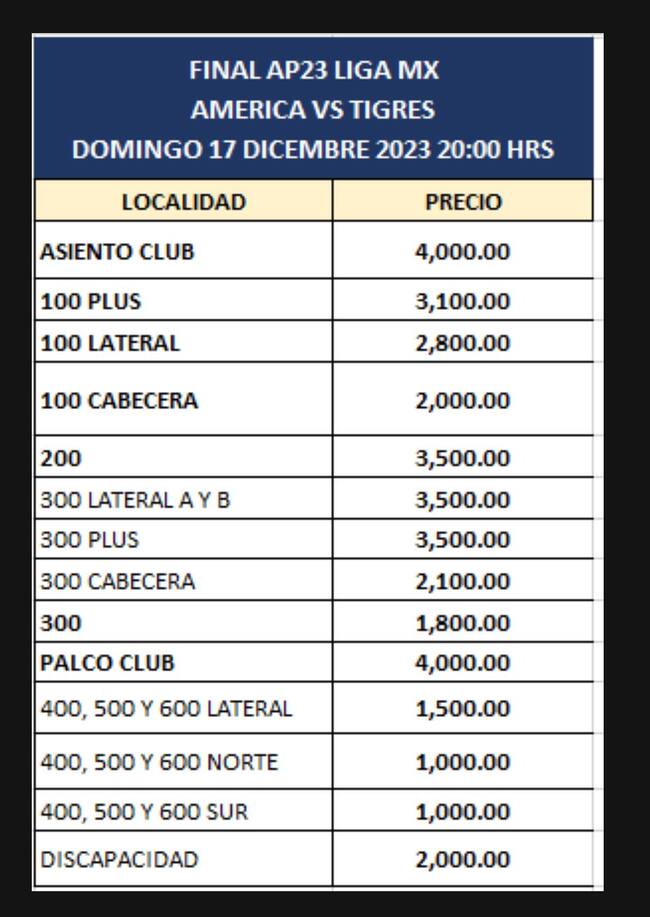 ¡Ya hay precios de boletos para la Final de vuelta en el Azteca!. Este lunes, América le ha mandado a sus abonados, el costo de las entradas para el próximo domingo y se han hecho públicos, provocando molestia y quejan por lo altísimo que están.