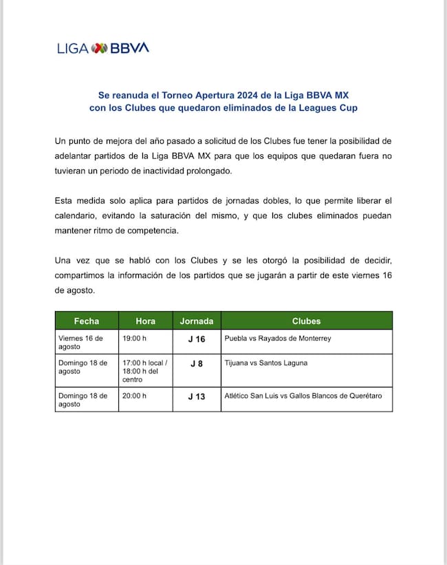 LIGA MX PARTIDOS DE REGRESO POST LEAGUES CUP