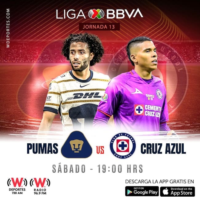 Pumas vs Cruz Azul en vivo por W RADIO y W DEPORTES