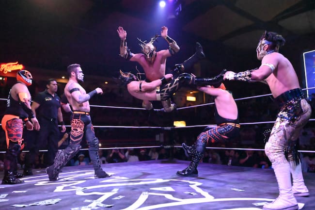 Utilizando artefactos como mesas de metal, pues el objetivo era mas que claro, llevarse la victoria a casa a como diera lugar. Luego entonces, después de un doble tope a las afueras del ring por parte de la Pandemia, dejo únicamente a Hijo de Pandemonium y Dark Cuervo, siendo este ultimo quien le otorgaría un foul, movimiento que por segundos le aseguro el triunfo, pues el referee al percatarse de esta acción decidió anular la desición y darle el triunfo al equipo contrario.
