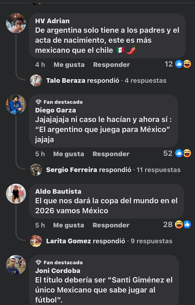 “De argentina solo tiene a los padres y el acta de nacimiento, este es más mexicano que el chile”; “Jajajajaja ni caso le hacían y ahora sí”; “Nació en Buenos Aires, tiene toda la cara de argentino pero ama el país donde creció”;”Es más mexicano que el chile”; “Se dice el mexicano que nació en Argentina y que ama México”, fueron algunos de los comentarios que se leen en la publicación de dicho medio.