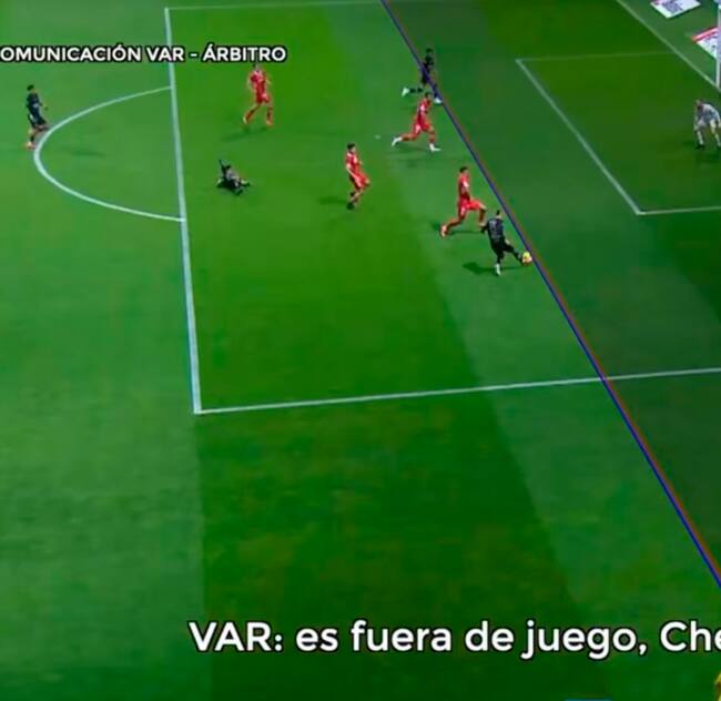 La versión oficial fue que la señal del VAR, mandó una imagen diferente a la de Televisión, por eso en el review que se posteó en redes sociales el lunes, la foto del fuera de lugar y los vectores, son diferentes.