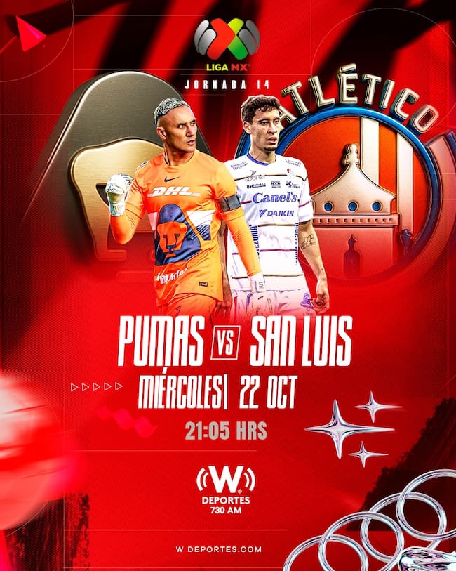 Se juega partido de la jornada 14 de la Liga BBVA MX, cuando Pumas reciba al Atlético de San Luis en el Estadio Olímpico Universitario.