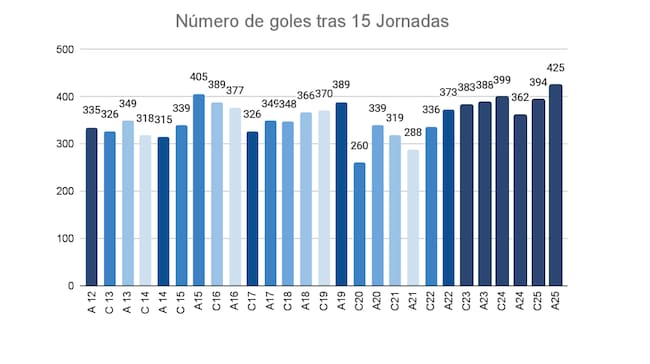 El Apertura 2025 es el de más anotaciones en los últimos 20 años. Después de 15 jornadas disputadas en el certamen, se han marcado 425 goles en 135 partidos.