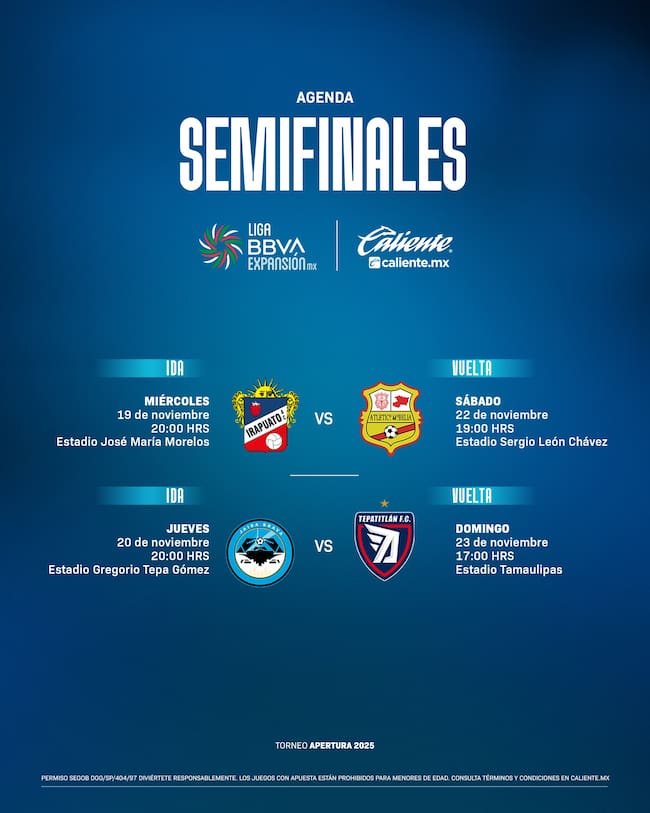 Agenda Semifinales Liga de Expansión Apertura 2025