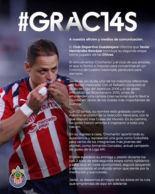 Este jueves, el Club Guadalajara emitió un comunicado oficial que pone punto final a su vínculo contractual, tras la eliminación en cuartos de final del Apertura 2025 ante Cruz Azul. Desafortunadamente, una imagen que quedará grabada para la afición rojiblanca, luego de que el balón pasara volando por encima del travesaño en el minuto 85 del Olímpico Universitario, sellando no solo la derrota 3-2 en la serie, sino el ocaso de un regreso soñado.