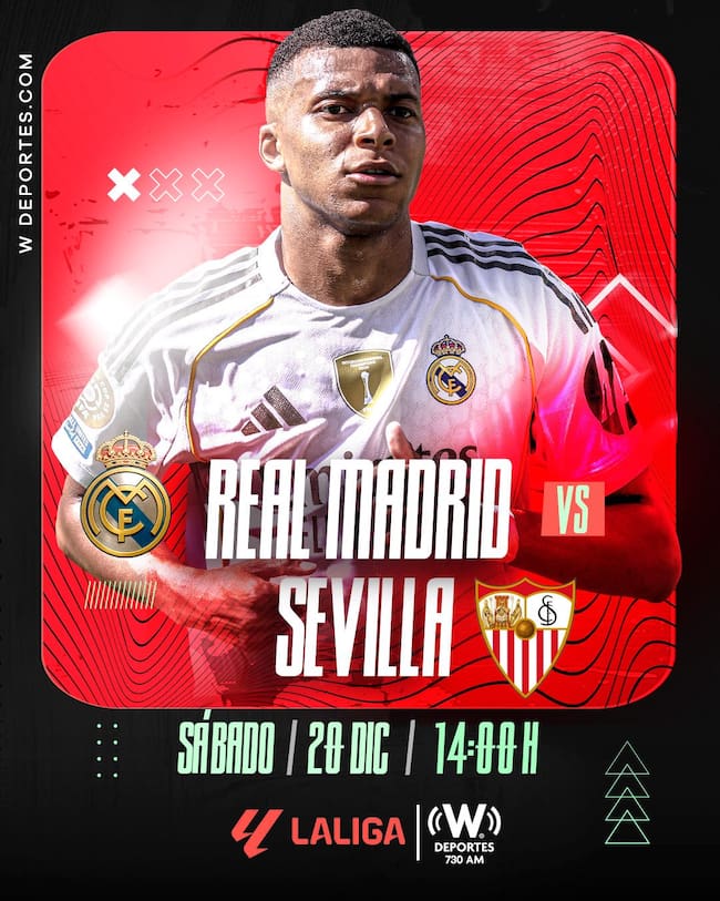 Desde el Bernabéu, Real Madrid recibe al Sevilla en el partido correspondiente a la jornada 17 de La Liga EA Sports. Los de casa buscarán cerrar el año futbolístico con una victoria para seguir peleando los primeros puestos de la tabla general.