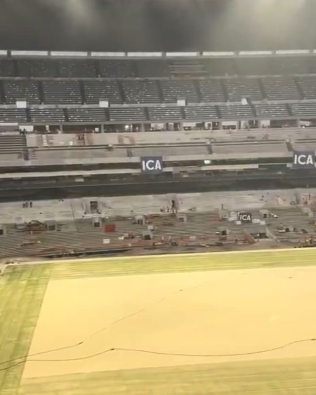 El Estadio Azteca avanza en su remodelación rumbo al Mundial 2026 con la instalación de césped híbrido, nuevas gradas, tribuna de prensa y mejoras estructurales.