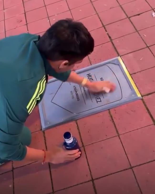 Un aficionado mexicano limpió la placa de Hugo Sánchez en el Atlético de Madrid. El gesto se hizo viral y el Pentapichichi pidió ayuda para encontrarlo.